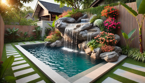 Đây là lựa chọn tuyệt vời cho nhà phố hoặc biệt thự có diện tích hạn chế. Bể bơi mini có thể kết hợp với khu vực thư giãn, ghế tắm nắng để tạo không gian nghỉ ngơi lý tưởng.
