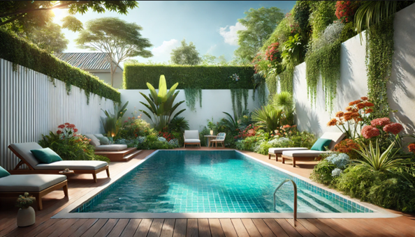 - Bể bơi phong cách resort: Mang đến không gian nghỉ dưỡng ngay tại nhà.
